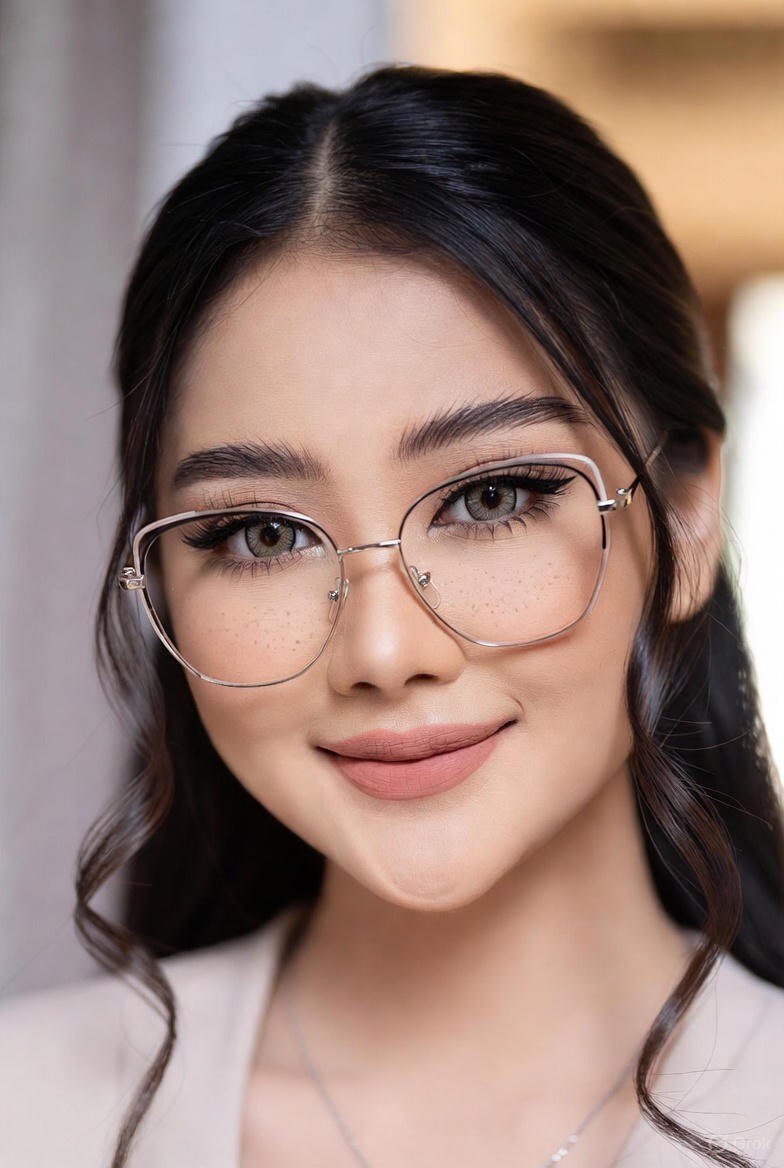- Изгиб бровей повторяет форму оправы, идет параллельно верхнему краю рамки.